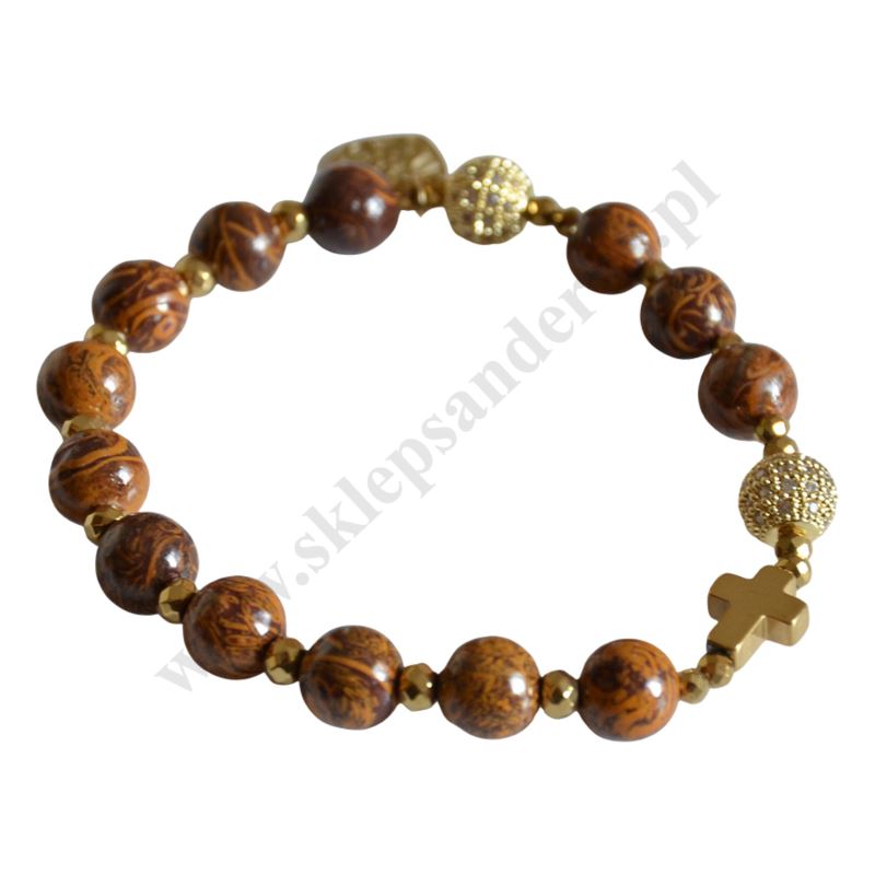 Różaniec w postaci bransoletki na rękę wykonanej z kamienia półszlachetnego jaspis kalahari w prezentowym pudełeczku.