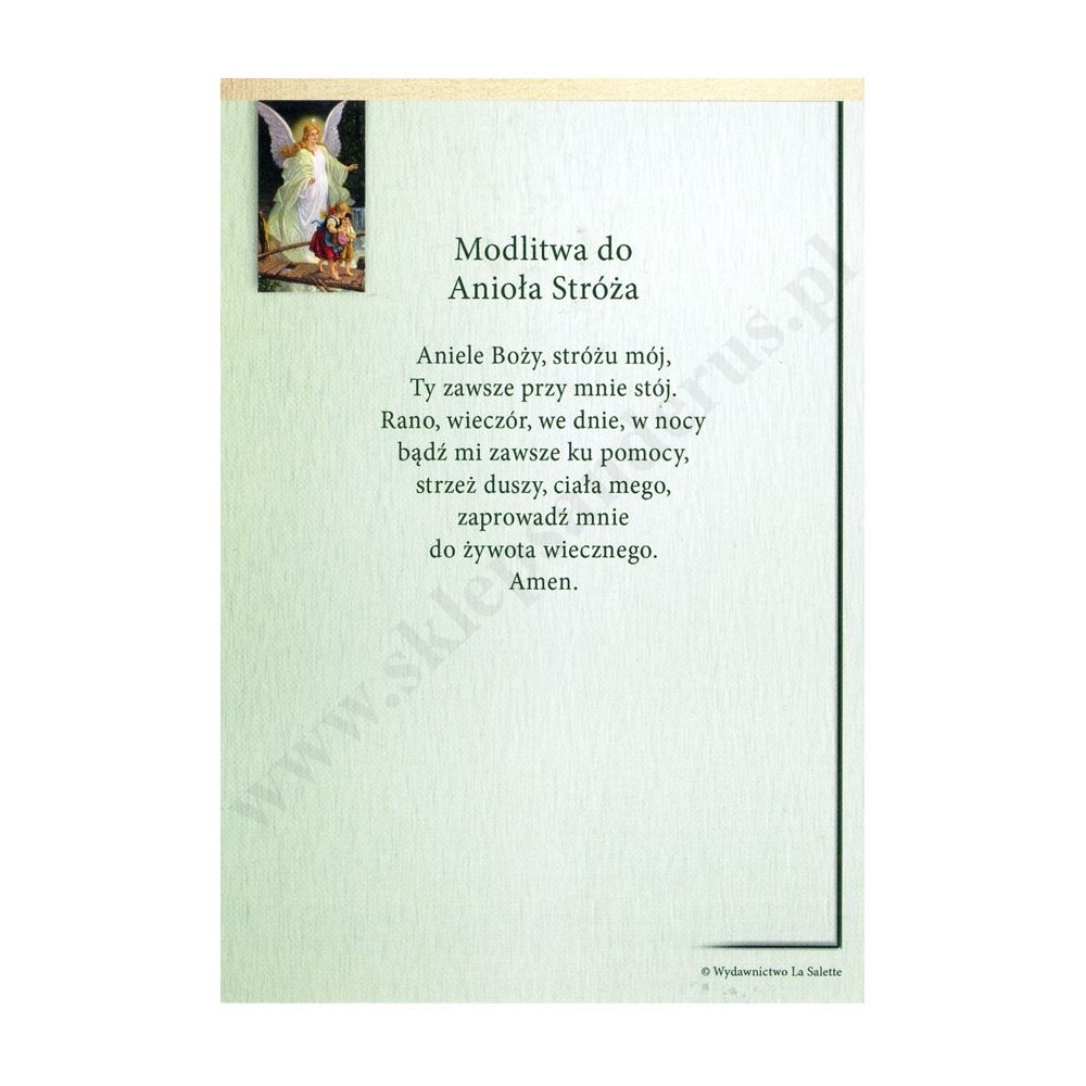 Obrazek pocztówka w formacie 10.5 x 15 cm przedstawiający Anioła Stróża z dziećmi na rewersie Modlitwa do Anioła Stróża. Paczka 100 szt.