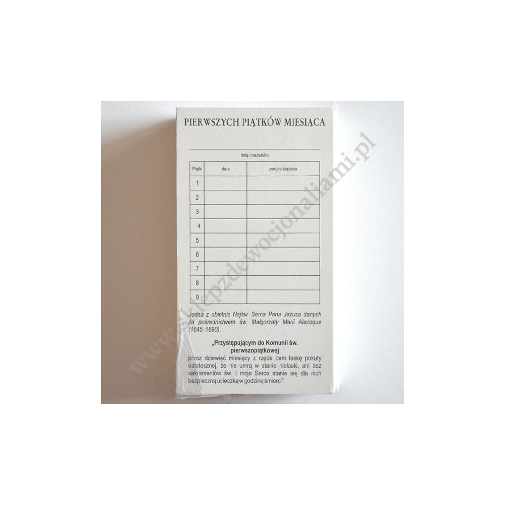 Dziewięć pierwszych piątków miesiąca w postaci obrazka w formacie 6.5 x 12 cm. Sprzedaż w paczce po 100 szt.