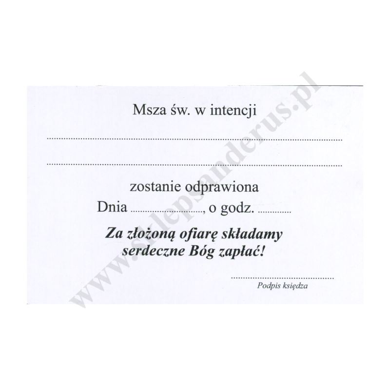 INTENCJE MSZY ŚWIĘTEJ - obrazek 10 x 6.5 cm - paczka 100 szt. - 30298