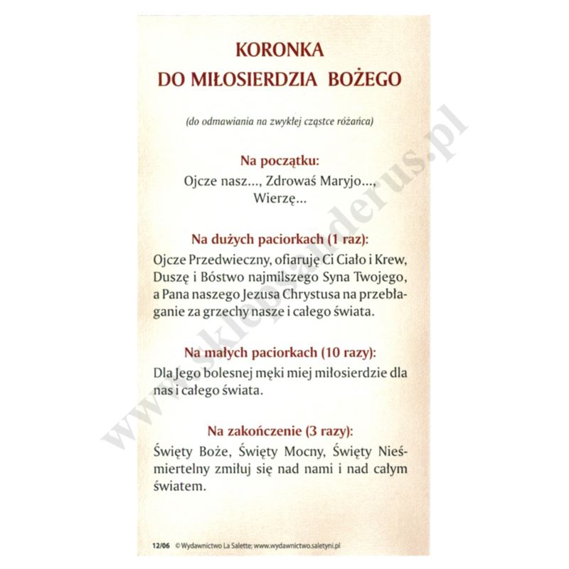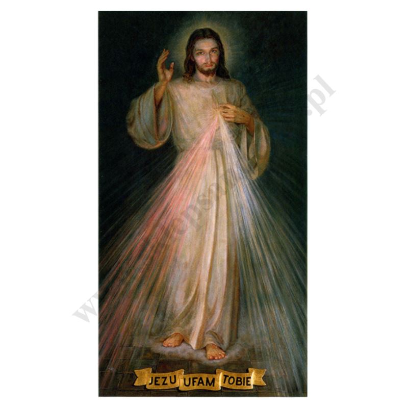 Obrazki przedstawiające Jezusa Miłosiernego, na rewersie Koronka do Miłosierdzia Bożego. Format obrazków 7 x 13 cm, lakierowane, pakowane po 100 szt.