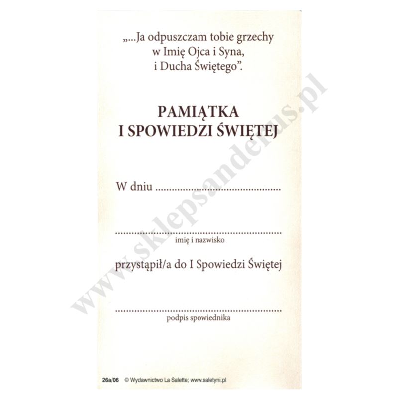Obrazki przedstawiające Jezusa Miłosiernego i motyw Powrót Syna Marnotrawnego, na rewersie Pamiątka I Spowiedzi Świętej z możliwością uzupełnienia danych dziecka. Format obrazków 7 x 13 cm, lakierowane, pakowane po 100 szt.