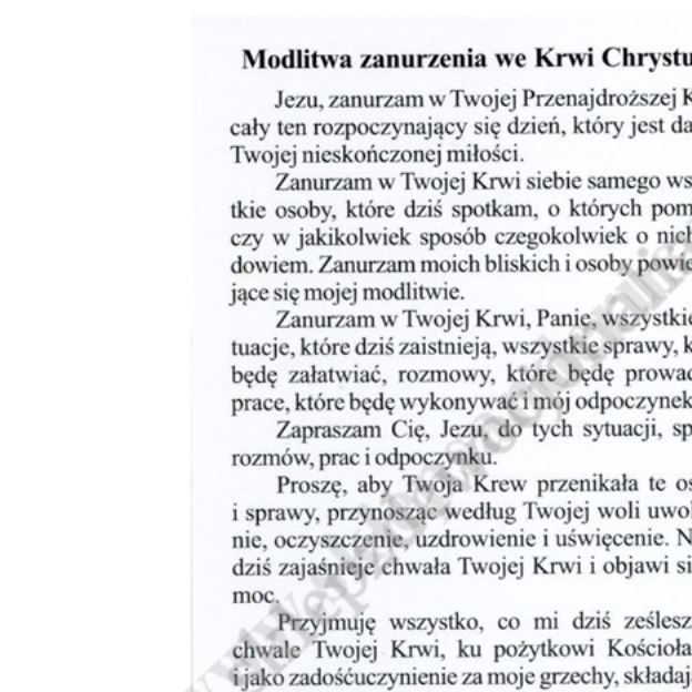 Obrazki w formacie 6.5 x 10 cm, paczka 100 szt. Na rewersie modlitwa zanurzenia we Krwi Chrystusa.