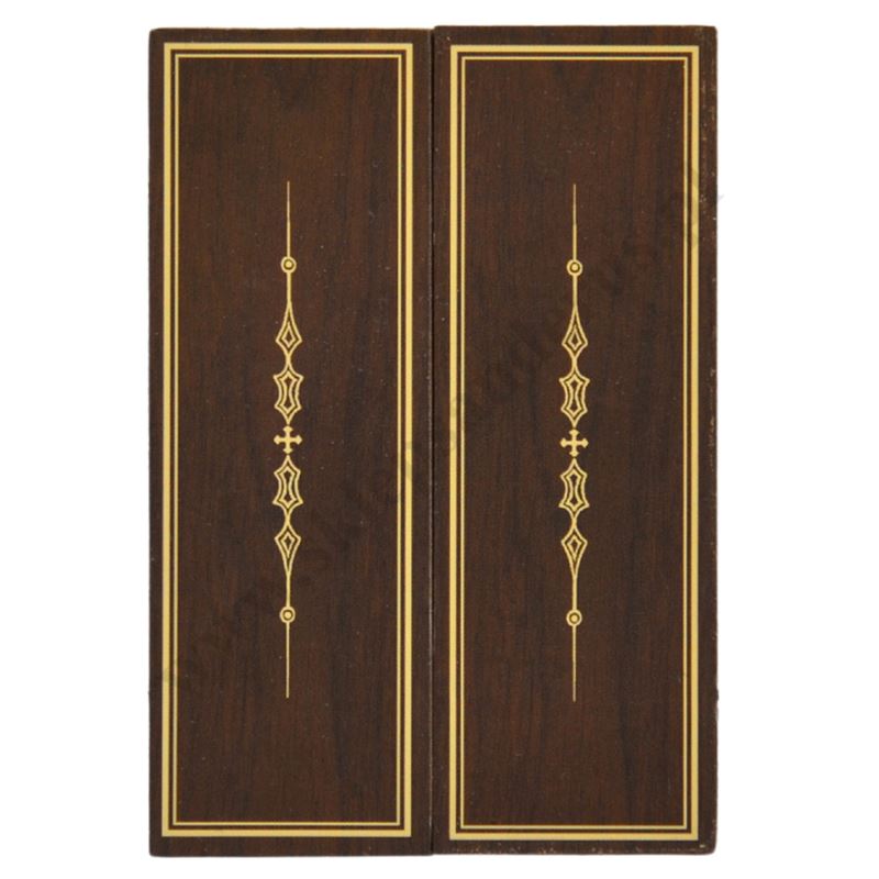 Tryptyk przedstawiający Matkę Bożą Nieustającej Pomocy oraz anioły wykonany z drewna, format po rozłożeniu 12.5 x 8.4 cm.