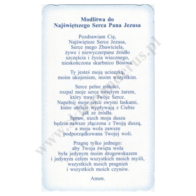 cm, na rewersie obrazka modlitwa do Najświętszego Serca Pana Jezusa. Sprzedaż w