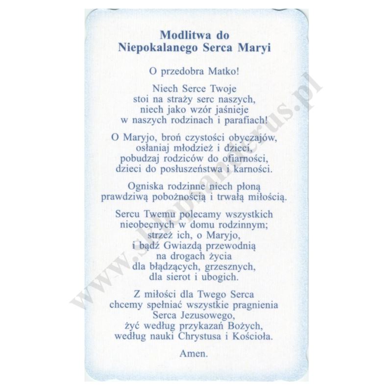 rewersie obrazka modlitwa do Niiepokalanego Serca Maryi. Sprzedaż w paczce po