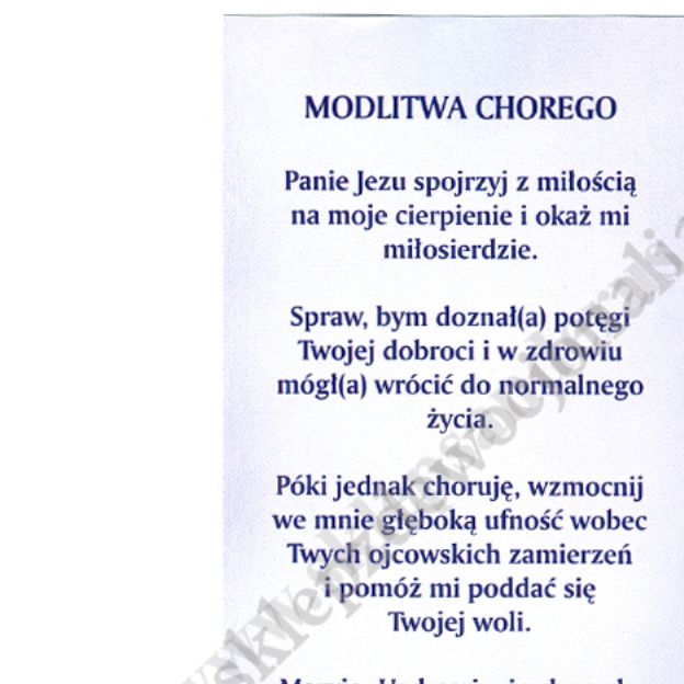 Obrazki chorego w formcie 7 x 13 cm, lakierowane, pakowane po 100 szt. na rerwersie modlitwa chorego.