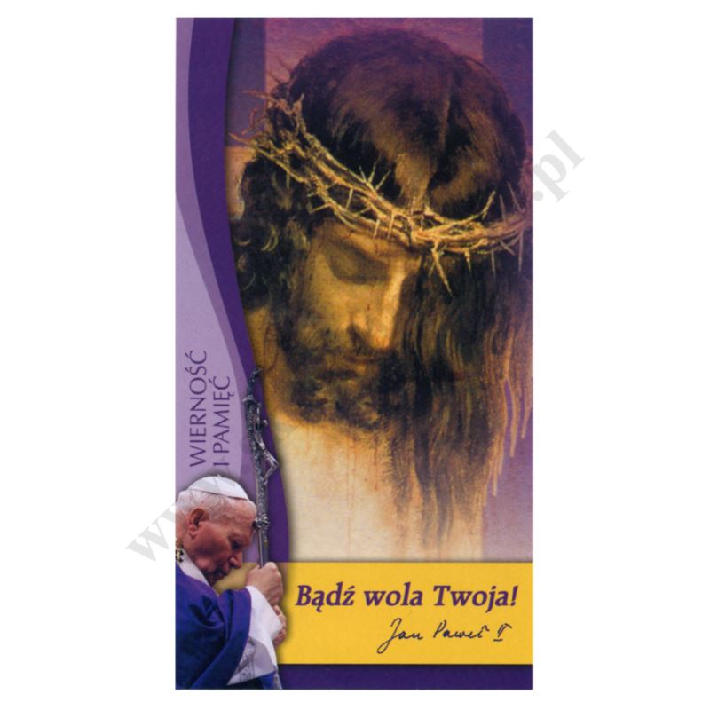 Obrazek z wizerunkiem Pana Jezusa i Św. Jana Pawła II, lakierowany w formacie 7 x 13 cm, na rewersie obrazka modlitwa chorego. Sprzedaż w paczce po 100 szt.