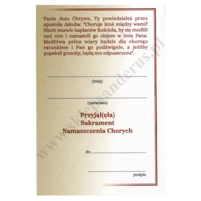 PAMIĄTKA SAKRAMENTU NAMASZCZENIA CHORYCH - obrazek 7.2 x 10.5 cm - paczka 100 szt. - 75239