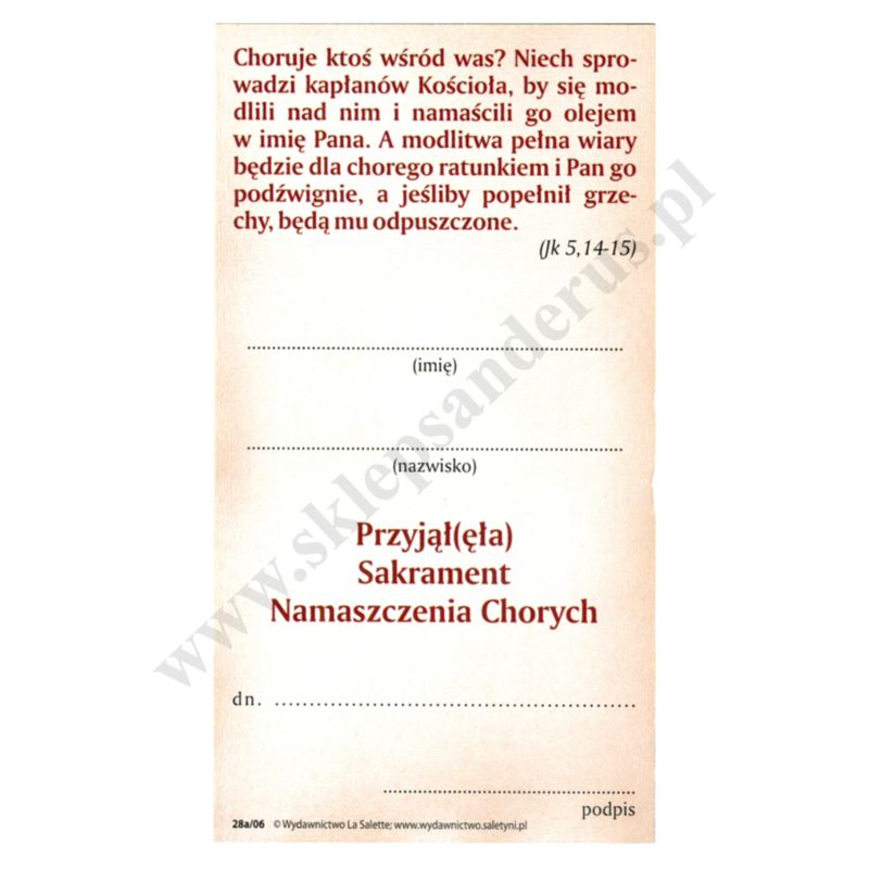 PAN JEZUS - SAKRAMENT NAMASZCZENIA CHORYCH - obrazek 7 x 13 cm - paczka 100 szt. - 87094