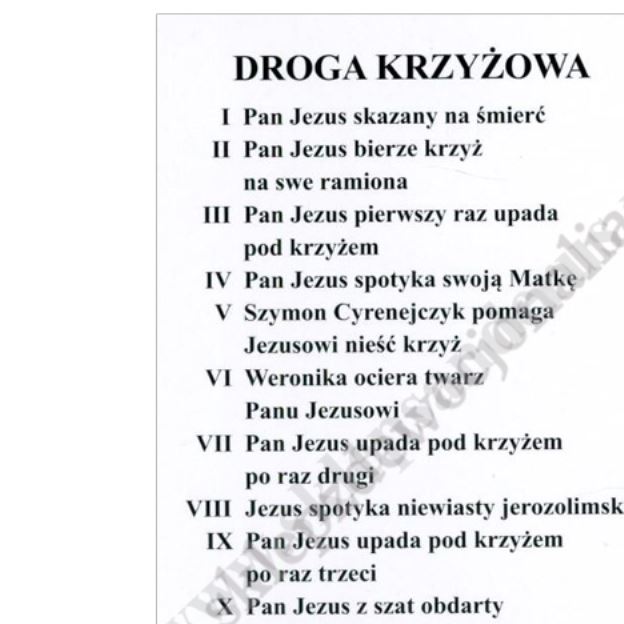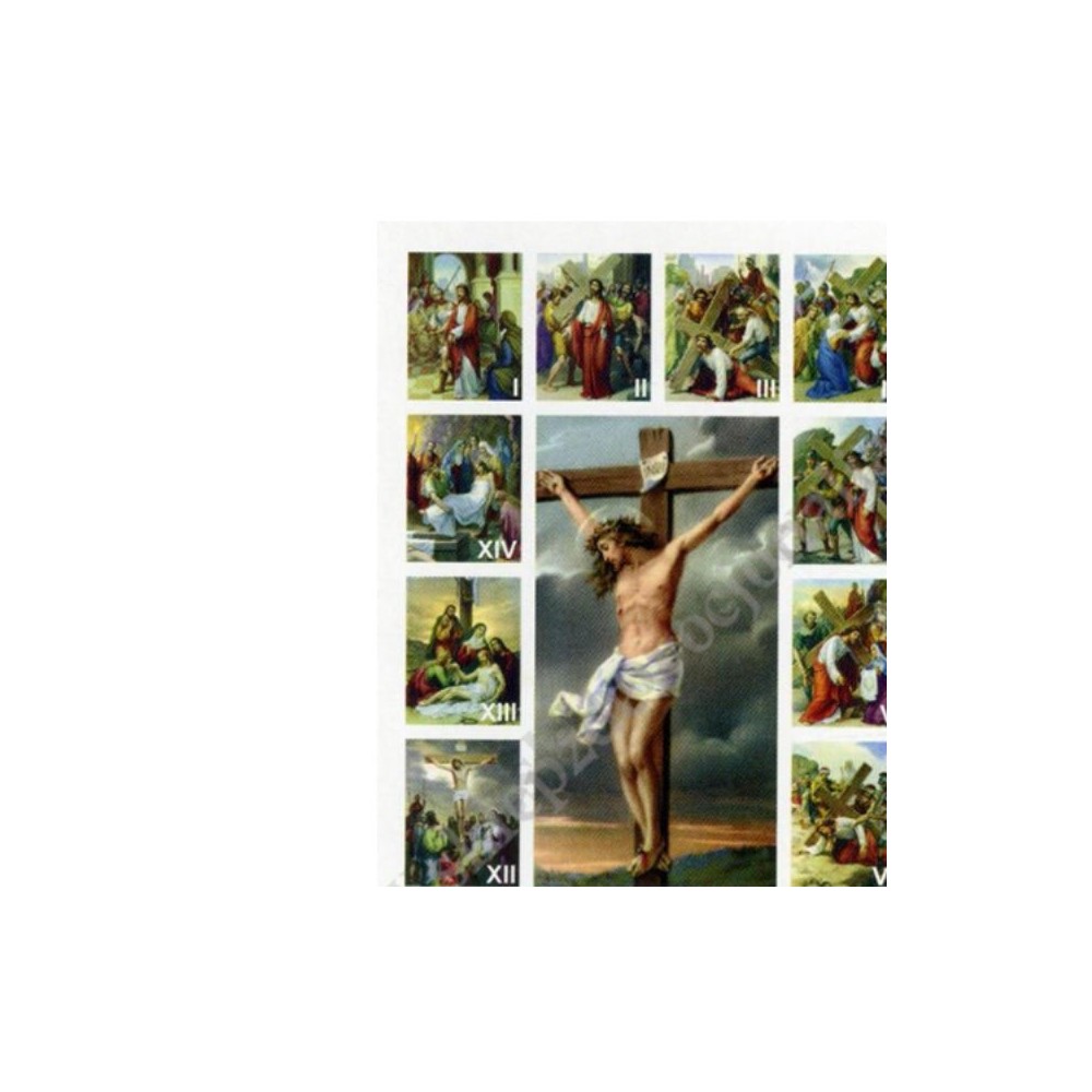 Obrazki w formacie 6.5 x 10 cm, paczka 100 szt. Obrazki ze stacjami Drogi Krzyżowej, na rewersie wymienione poszczególne stacje Drogi Krzyzowej.