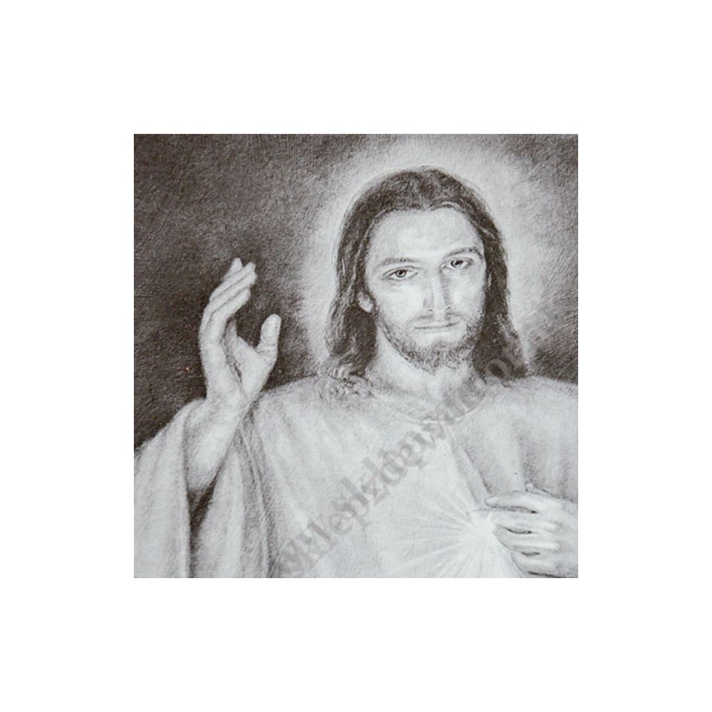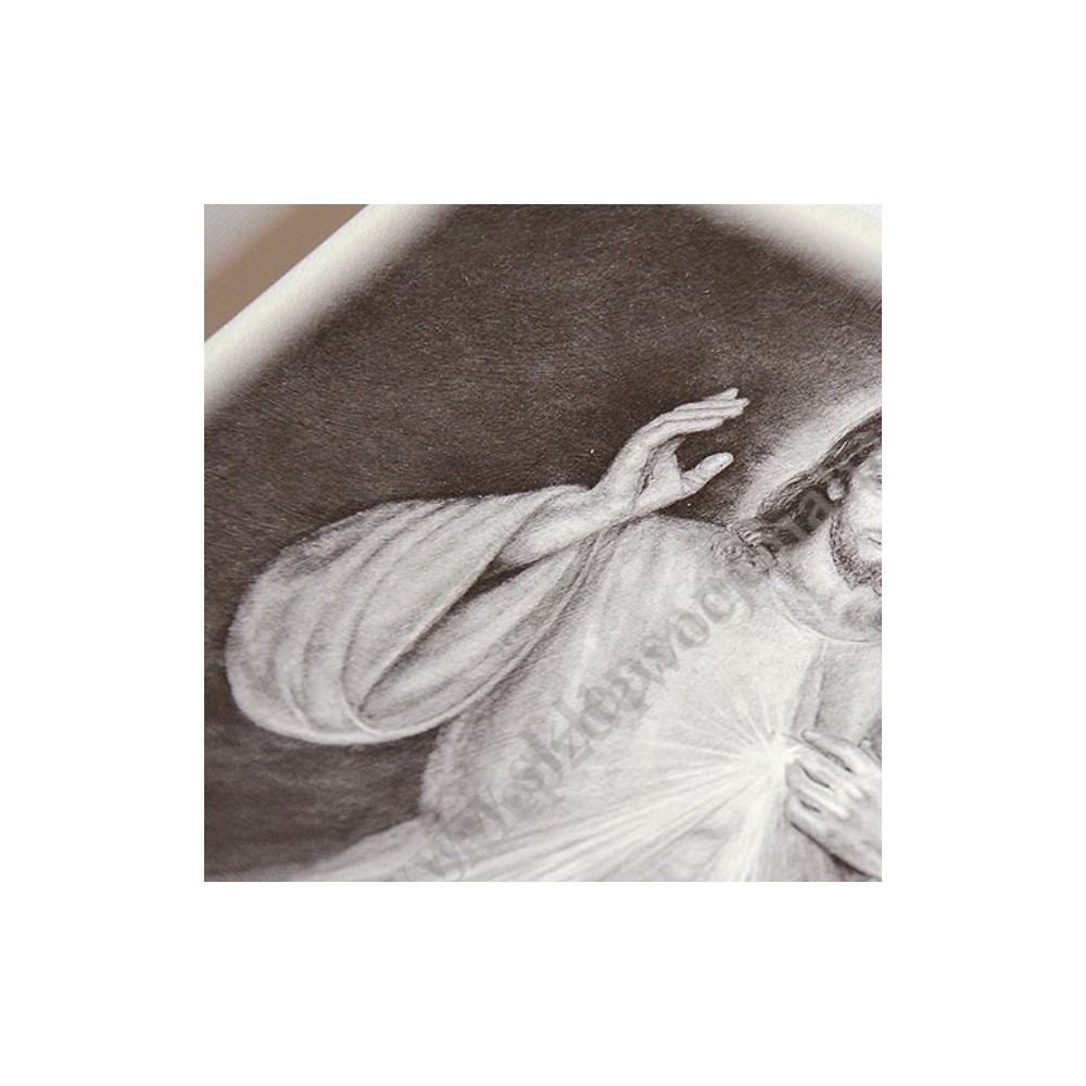 Obraz przedstawiający wizerunek Jezu Ufam Tobie w formacie 26 x 43 cm. PONIŻEJ W PRODUKTACH POWIĄZANYCH ISTNIEJE MOŻLIWOŚĆ ZAMÓWIENIA OKAZJONALNEJ DEDYKACJI NA TABLICZCE SREBRNEJ LUB ZŁOTEJ.