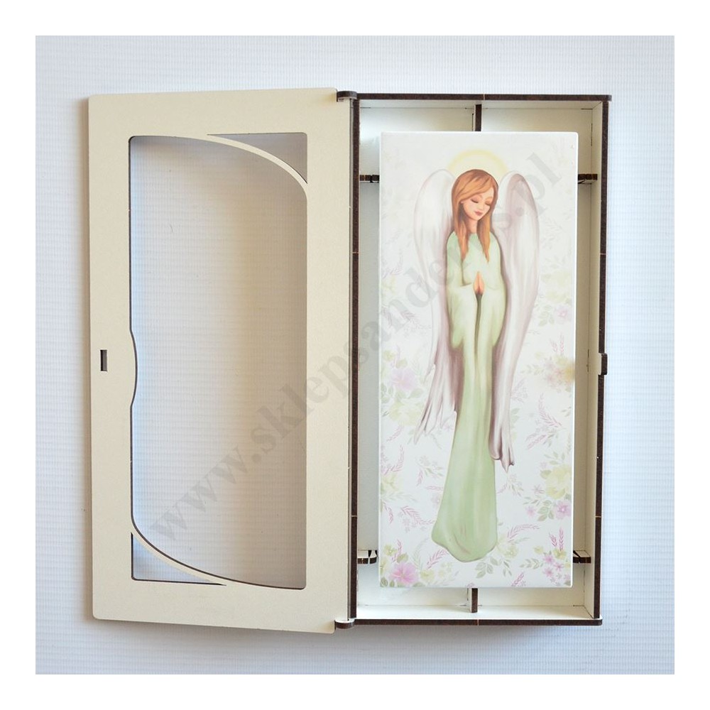 OBRAZEK ANIOŁA W DREWNIANYM PUDEŁKU - 11084