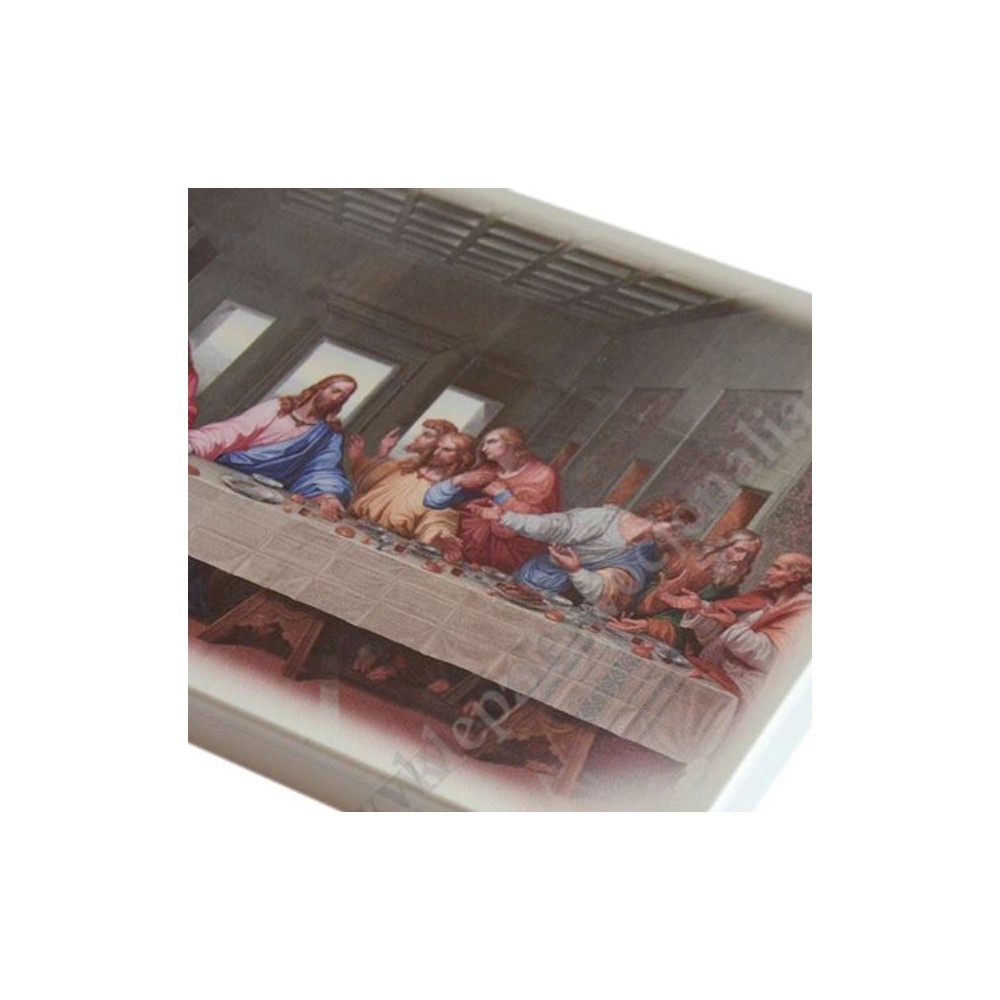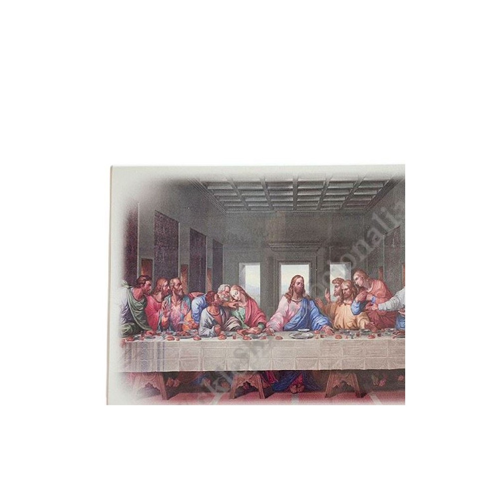 Nowoczesny obraz Ostatniej Wieczerzy o szerokości 43 cm i wysokości 26 cm. PONIŻEJ W PRODUKTACH POWIĄZANYCH ISTNIEJE MOŻLIWOŚĆ ZAMÓWIENIA OKAZJONALNEJ DEDYKACJI NA TABLICZCE SREBRNEJ LUB ZŁOTEJ.
