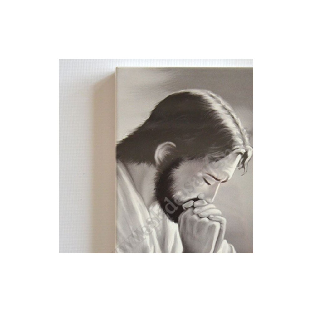 Nowoczesny obraz Pana Jezusa modlącego o szerokości 26 cm i wysokości 43 cm. PONIŻEJ W PRODUKTACH POWIĄZANYCH ISTNIEJE MOŻLIWOŚĆ ZAMÓWIENIA OKAZJONALNEJ DEDYKACJI NA TABLICZCE SREBRNEJ LUB ZŁOTEJ.