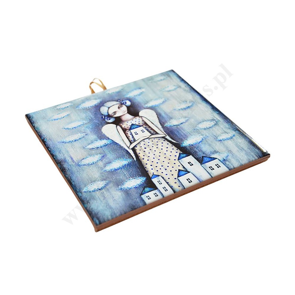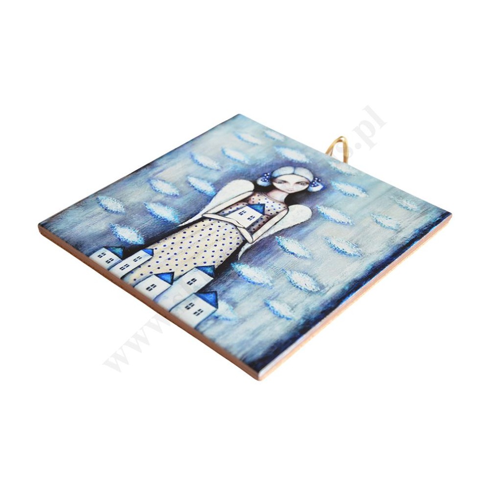 Obrazek na płytce ceramicznej z zawieszką w formacie 10 x 10 cm.