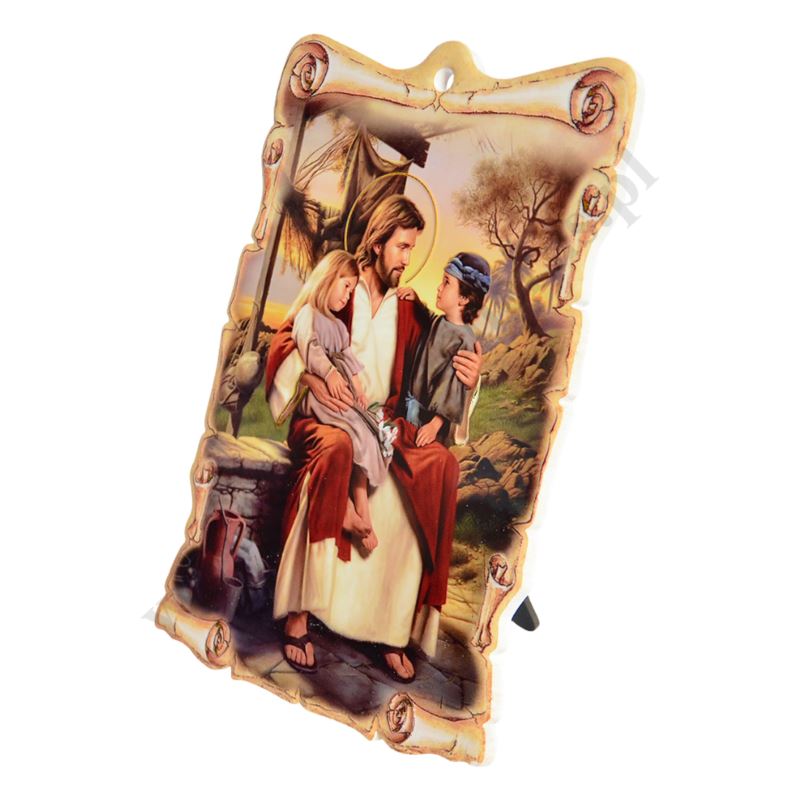 Obrazek ceramiczny przedstawiający wizerunek Pana Jezusa z dziećmi w formacie 15 x 22 cm. Obrazek do postawienia lub powieszenia.
