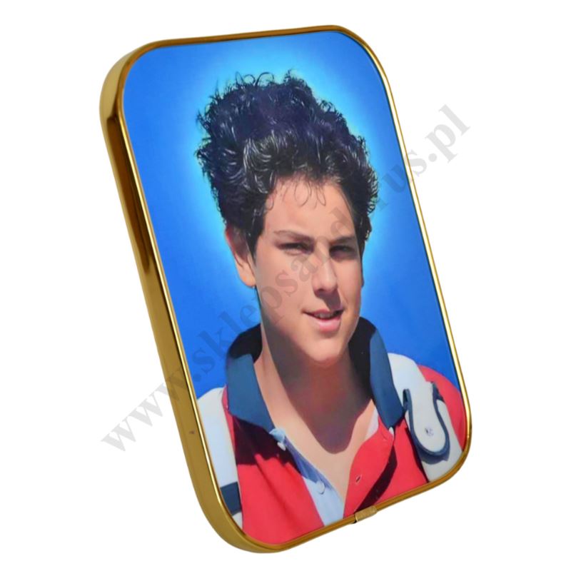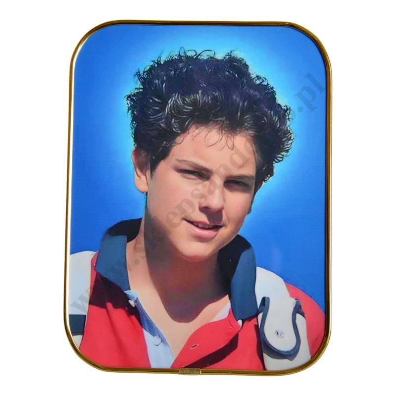Obrazek Świętego Carlo Acutisa w formacie 15 x 20 cm do postawienia. PRODUKTACH POWIĄZANYCH ISTNIEJE MOŻLIWOŚĆ ZAMÓWIENIA OKAZJONALNEJ DEDYKACJI NA TABLICZCE SREBNEJ LUB ZŁOTEJ.