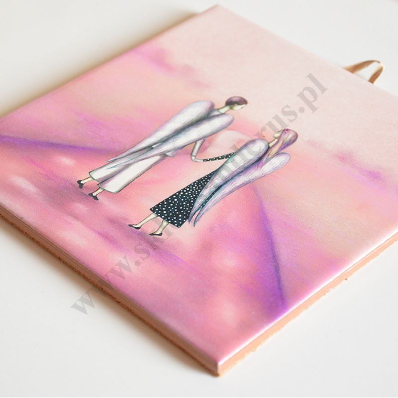 Obrazek na płytce ceramicznej z zawieszką w formacie 15 x 15 cm.