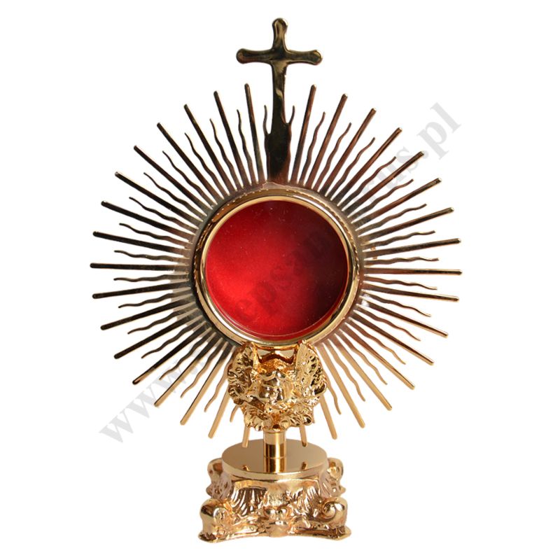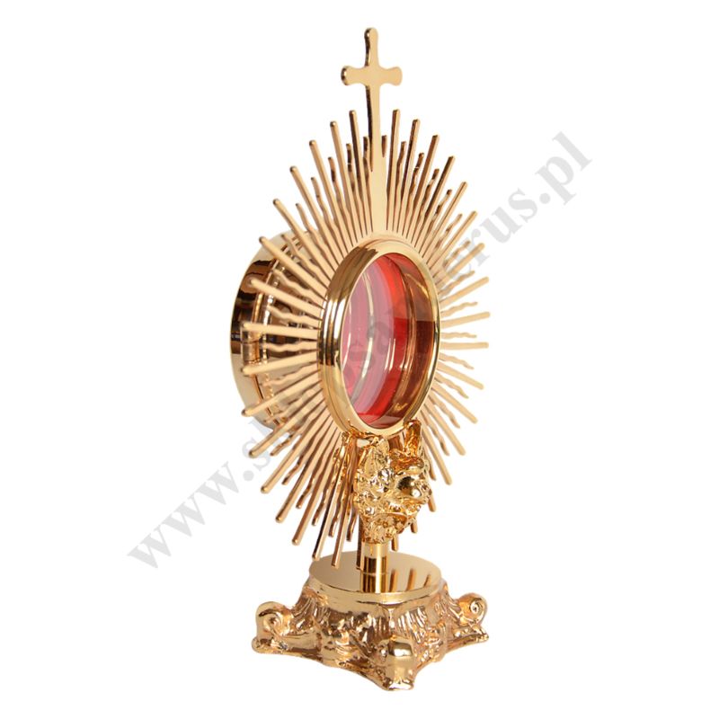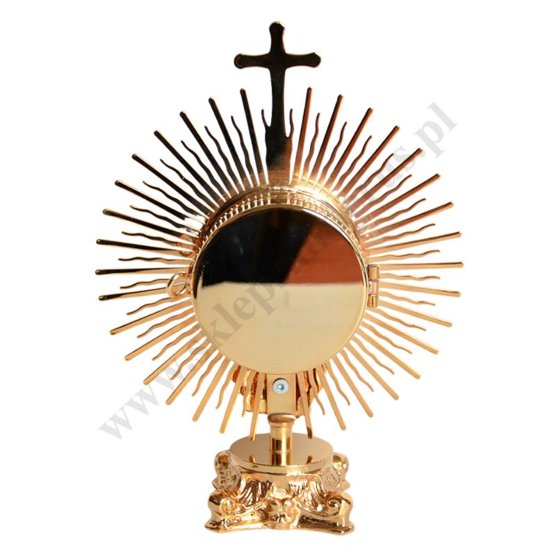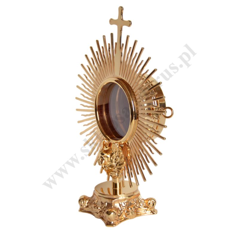 Relikwiarz wykonany z blachy mosiężnej z elementami oksydowanymi. Wysokość relikwiarza 17.5 cm, szerokość 13 cm, głębokość 5.5 cm, średnica wewnętrza luny na relikwie 5.5 cm.