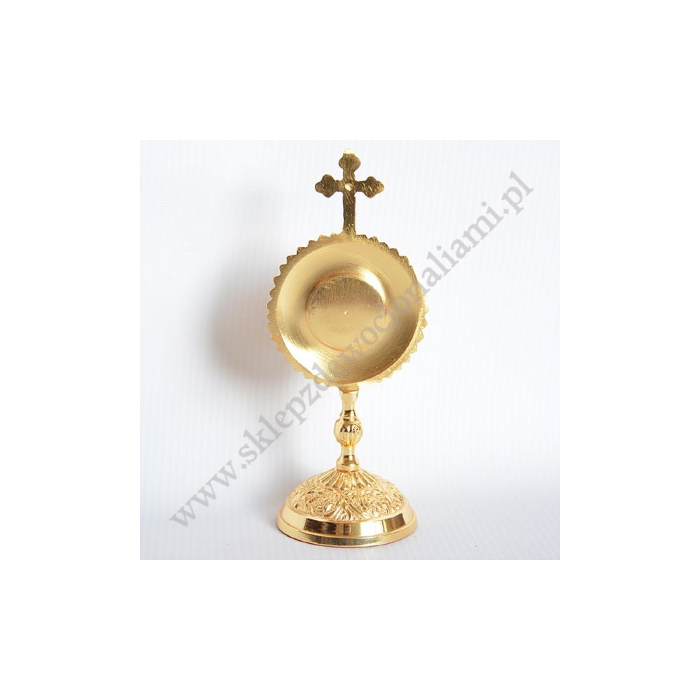 Relikwiarz mosiężny pozłacany o wysokości 16.4 cm