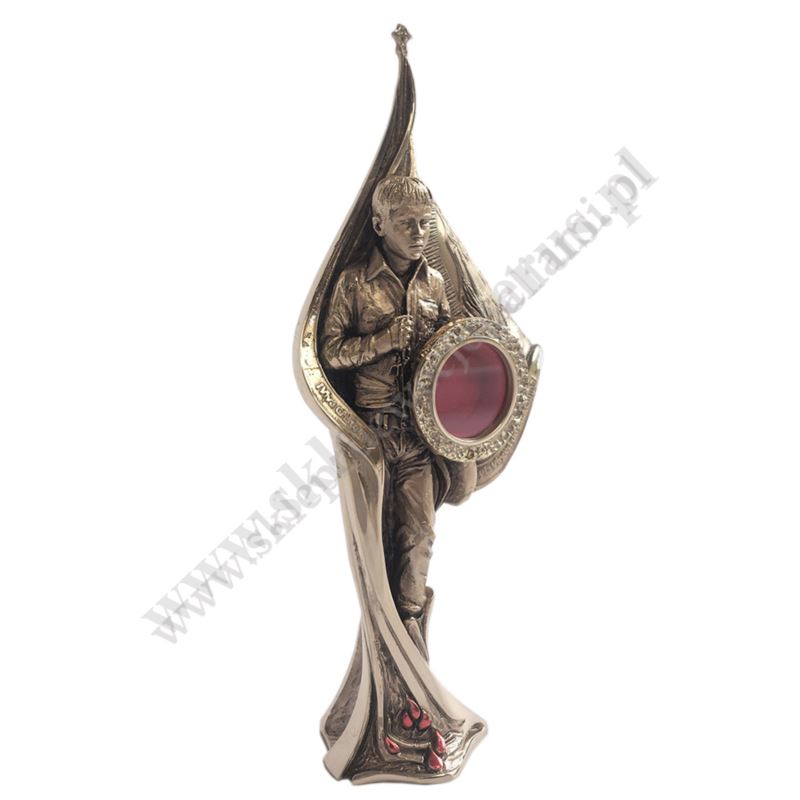 Relikwiarz na relikwie Jose Sanchez del Rio, wykonany z brązu techniką odlewniczą.