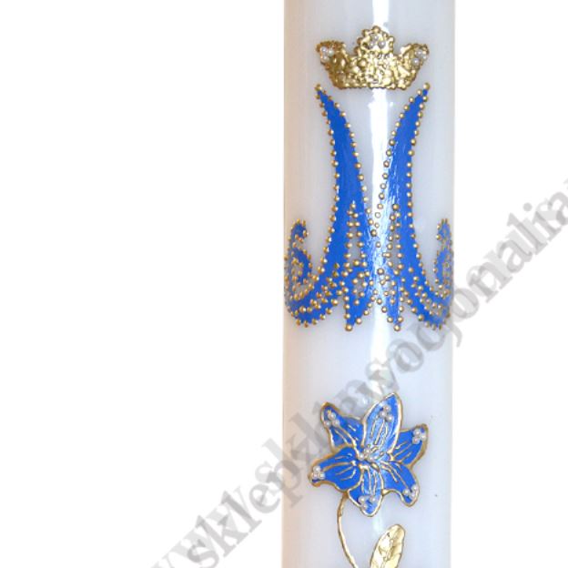Świeca roratnia recznie malowana o wysokości 80 cm i średnicy 9 cm.