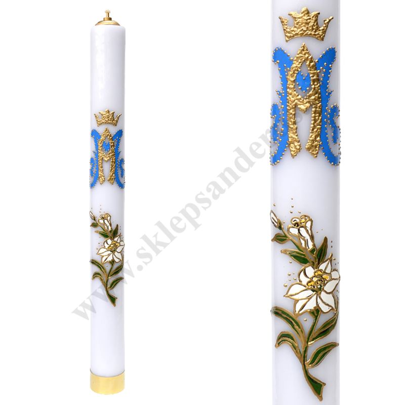 Świeca roratnia olejowa. Ręcznie malowana i zdobiona w komplecie z wkładem olejowym. Wysokość świecy 80 cm, średnica 7 cm.