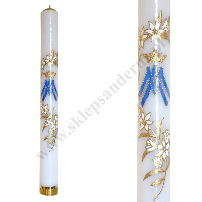 Świeca roratnia olejowa, oblewana parafiną z zwykłym wkładem olejowym o wysokości 80 cm i średnicy 8 cm, zdobienia malowane ręcznie.