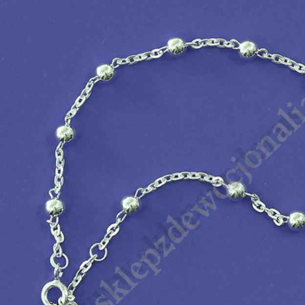 Srebrna dziesiątka różańca w postaci bransoletki na rękę. Próba srebra PR 925. Długość bransoletki 20 cm.