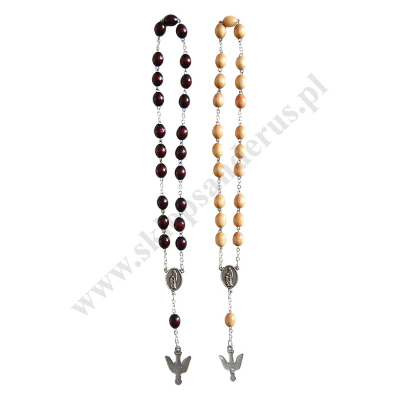 Różaniec drewniany - koronka do Ducha Świętego - długość 23.5 cm, rozmiar koralika 9 x 7 mm. Dostępny w dwóch kolorach.