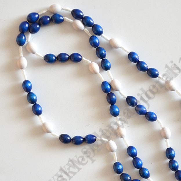 Drewniana na sznurku koronka do Świętego Józefa o długości 44 cm, wymiar paciorka 9 x 7 mm.