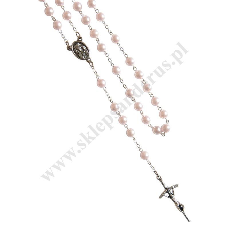 Różaniec kulka różowa o średnicy koralików ok. 6 mm, długość różańca ok. 50.5 cm.