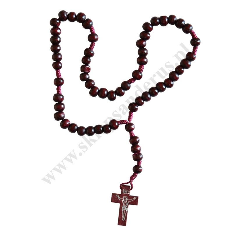 Różaniec drewniany na sznurku o długości ok.32 cm i średnicy koralika ok. 7 mm.