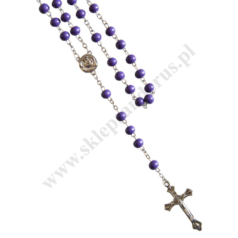 Różaniec zapachowy w okrągłym pudełeczku. Długość różańca 49 cm, średnica koralika ok. 6 mm.