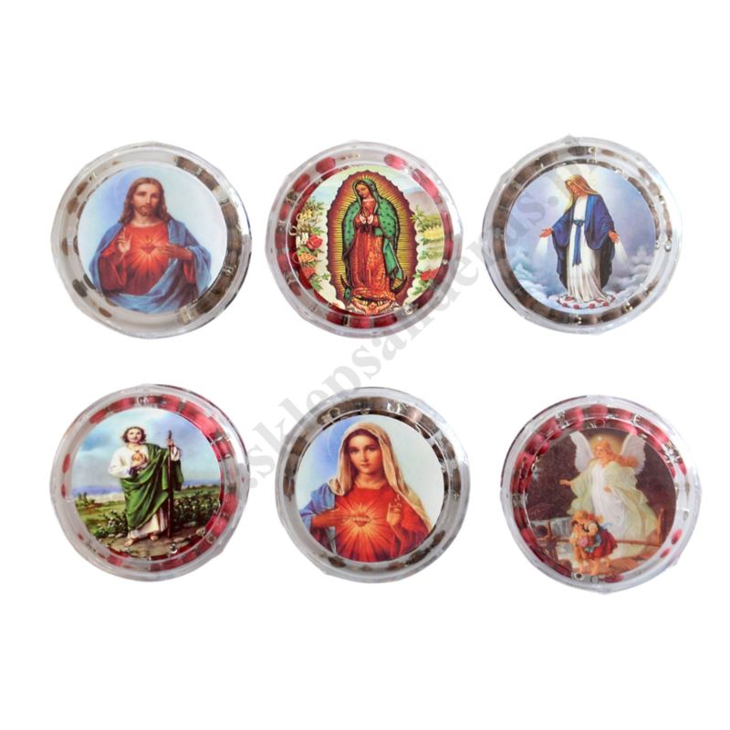 Różaniec zapachowy w plastikowym, okrągłym pudełeczku. Sprzedaż w miksie wzorów. Długość różańca ok. 49 cm, średnica koralika ok. 5 mm. Pudełeczko średnicy 5 cm i wysokości 2 cm.