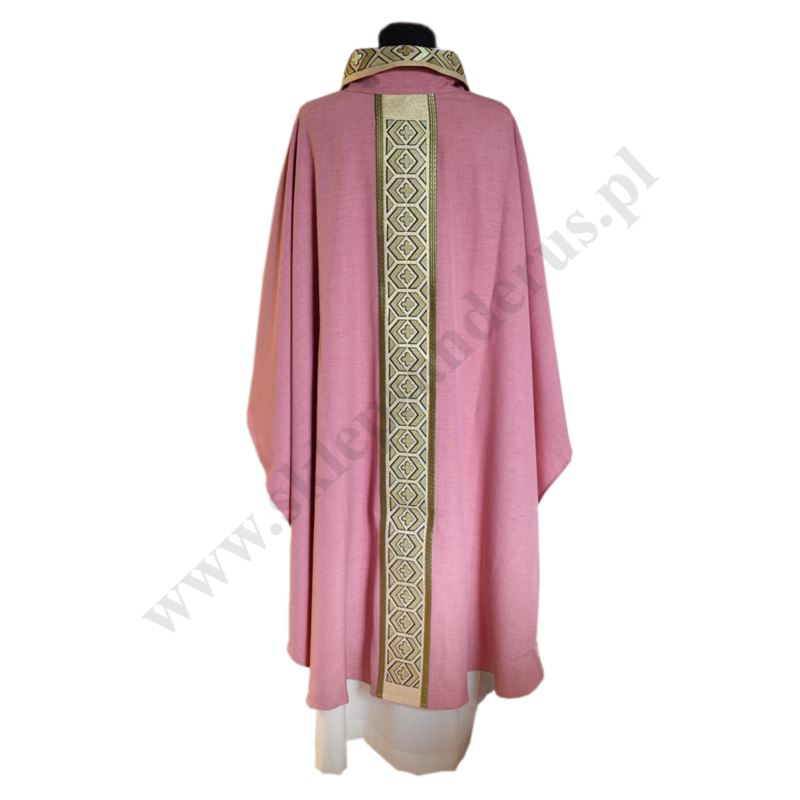Elegancki ornat monastyczny ze stułą wewnętrzną. Szata ozdobiona bogatym geometrycznym haftem w kolorach złota z zaznaczonymi cieniami w kolorze czerni. Bogaty haft został wykonany na złotym pasie i wykończony elegancką złotą pasmanterią. Piękno i szlachetność szaty podkreśla również haftowany złoty kołnierz. Lekka tkanina, bogaty haft na pasie, złota pasmanteria – doskonałe połączenie stylu i klasy.