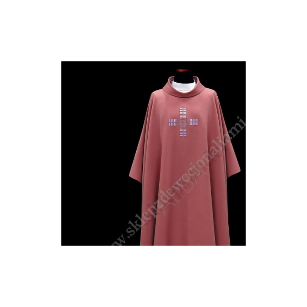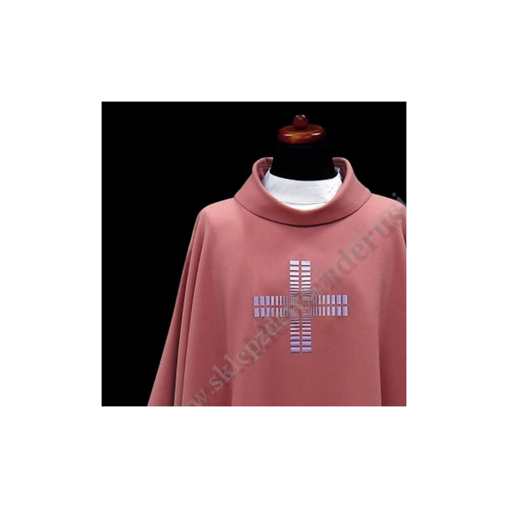 Ornat ozdobiony haftowanym krzyżem w kolorach fioletu. Haft również z tyłu.