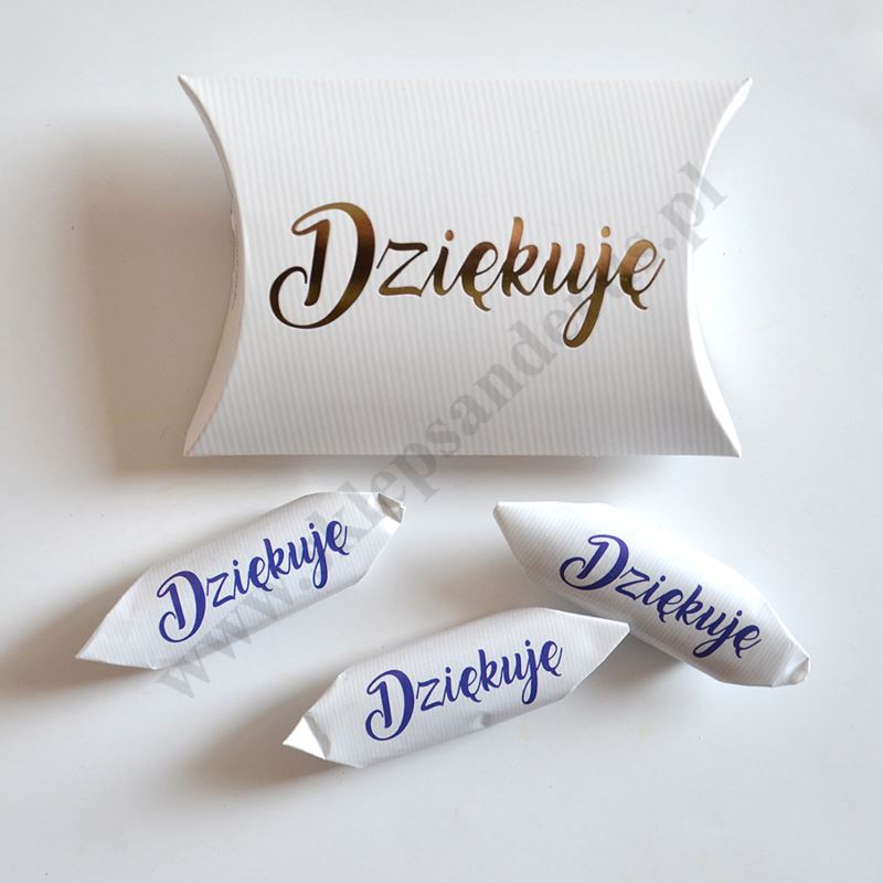 Trzy krówki z sentencjami zapakowane w okazyjny, elegancki kartonik w formie podziękowania.