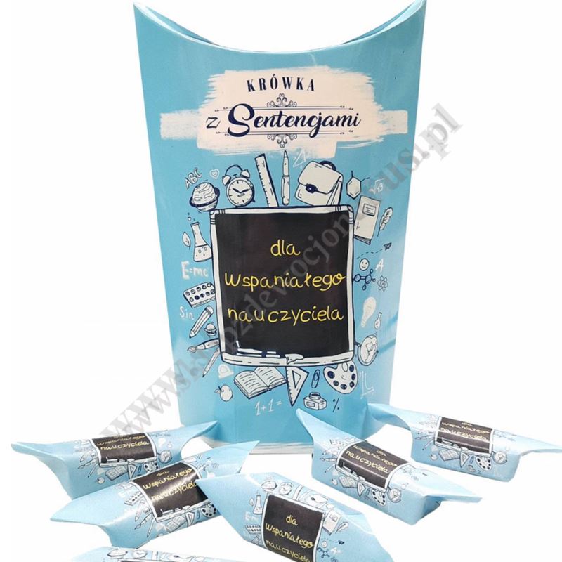 Krówki mleczne w opakowaniu 250g z sentecjami dla nauczyciela.