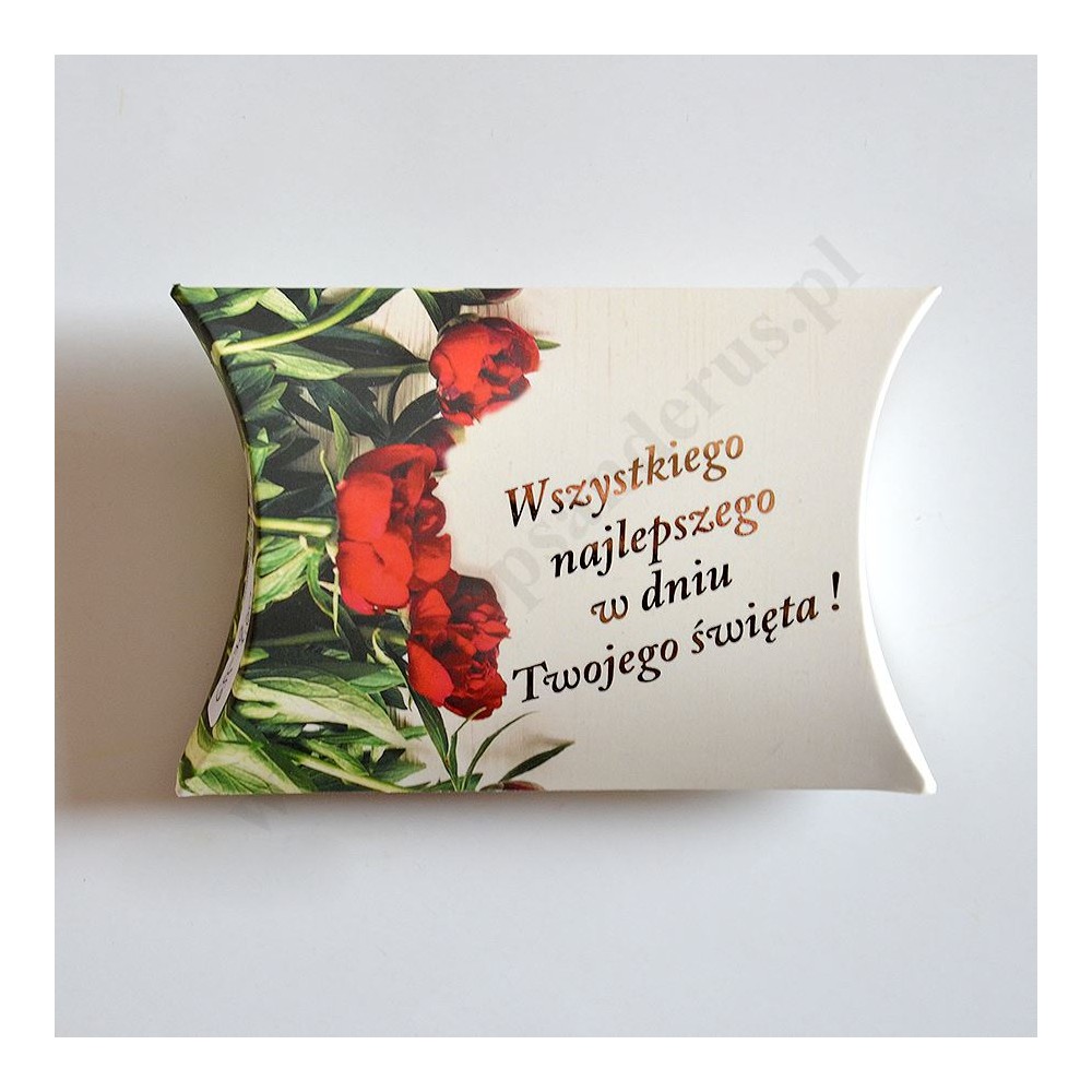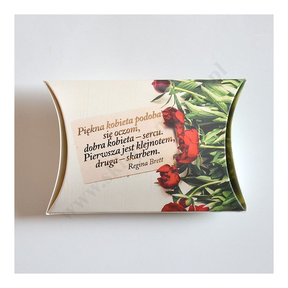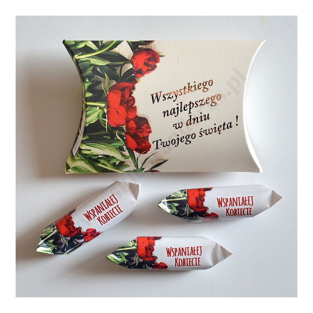Trzy krówki z sentencjami zapakowane w okazyjny, elegancki kartonik na okazję Dnia Kobiet.