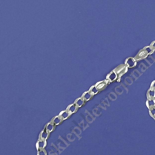 Srebrny łancuszek typu pancerka diamentowana o długości 50 cm, szerokości 3.7 mm i grubości 0.95 mm, waga 9.8 g, próba srebra PR 925.