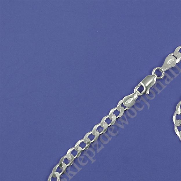 Srebrny łancuszek typu pancerka diamentowana o długości 50 cm, szerokości 4.3 mm i grubości 1.1 mm, waga 10.8 g, próba srebra PR 925.