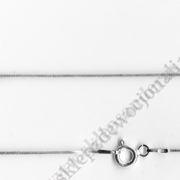 Srebrny łancuszek typu linka o długości 50 cm i szerokości 0.9 mm. Srebro próba 925, waga 3.3 g. Zapięcie typu federing.