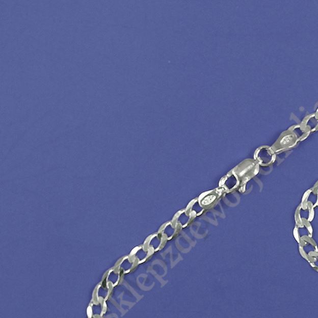 Srebrny łancuszek typu pancerka diamentowana o długości 60 cm, szerokości 3.7 mm i grubości 0.95 mm, waga 9.7 g, próba srebra PR 925.