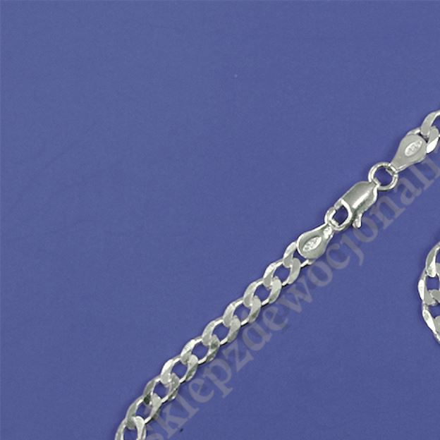 Srebrny łancuszek typu pancerka diamentowana o długości 60 cm, szerokości 4.3 mm i grubości 1.1 mm, waga 12.8 g, próba srebra PR 925.
