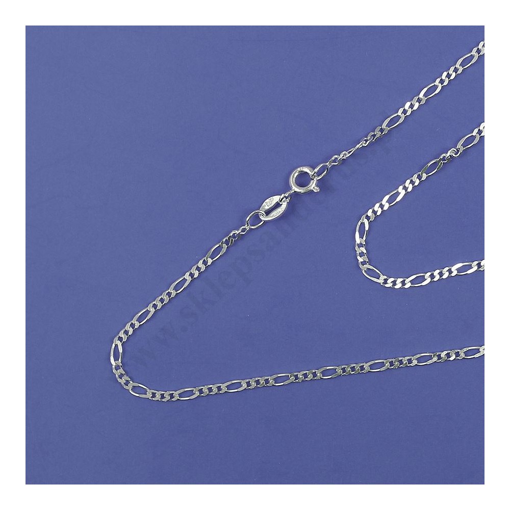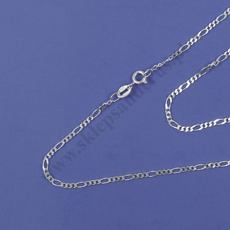 Srebrny łancuszek figaro diamentowy o długości 45 cm, szerokości 1.9 mm, grubości 0.6 mm i wadze 2.7 g, próba srebra PR 925.