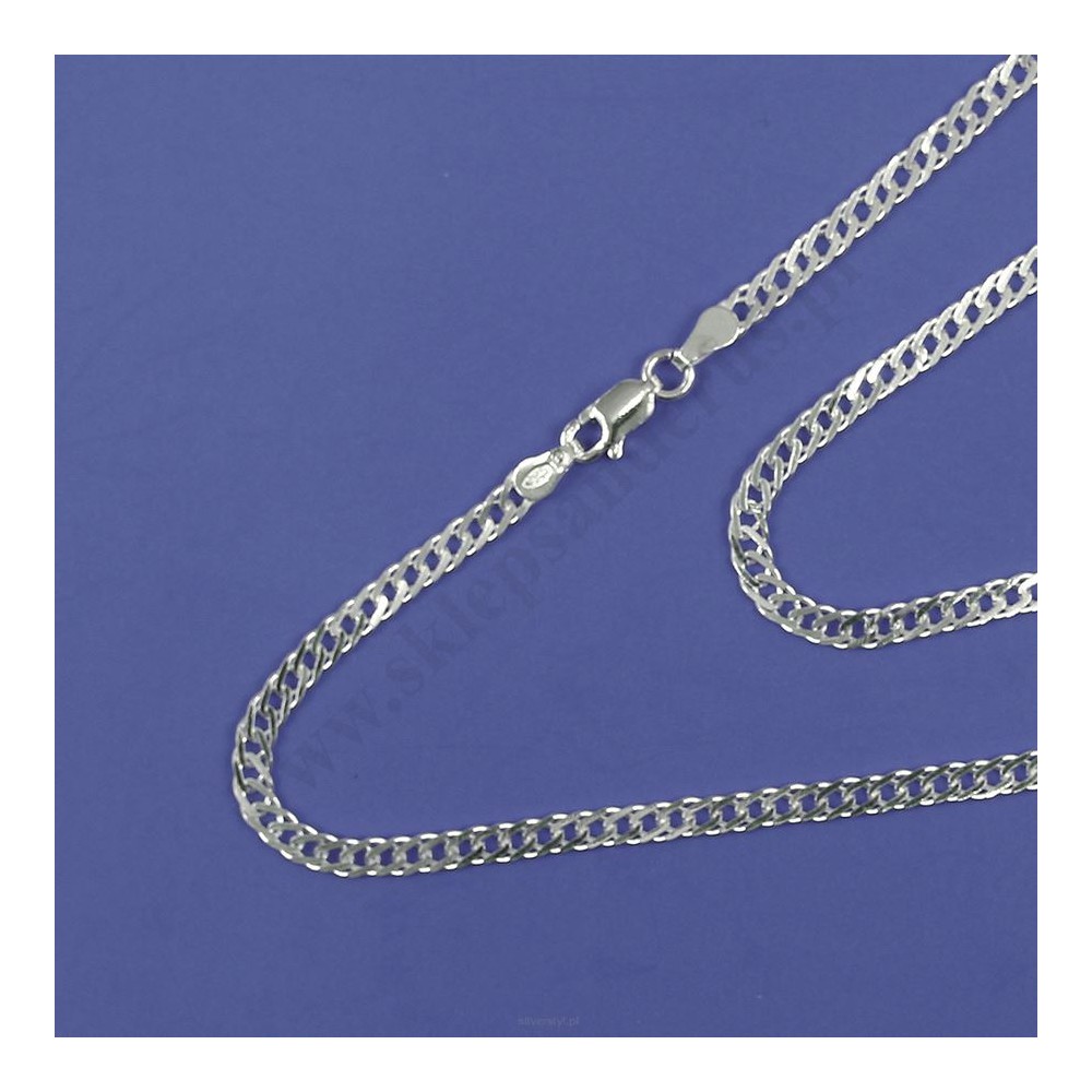 Srebrny łancuszek typu rombo diamentowe o długości 45 cm, szerokości 3.35 mm, grubości 0.8 mm i wadze 6,1 g, próba srebra PR 925.