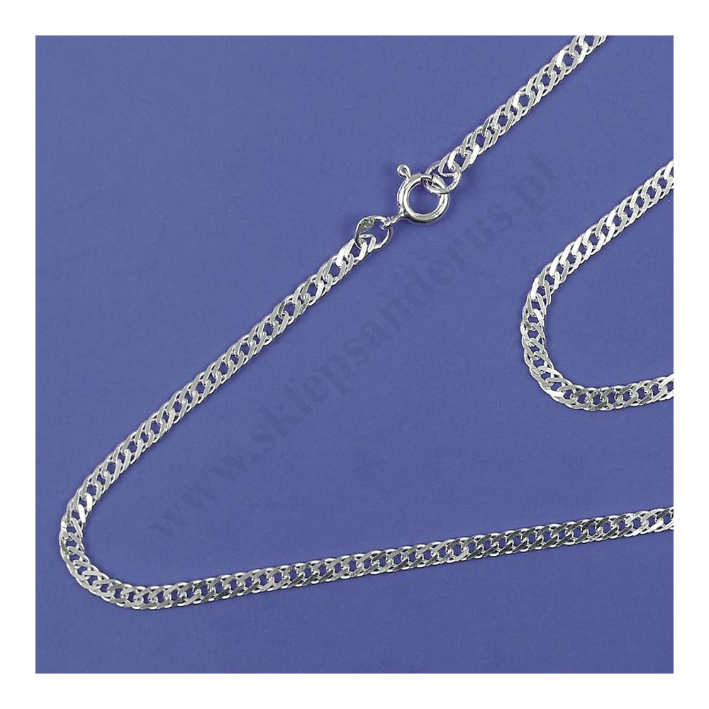 Srebrny łancuszek typu rombo diamentowe o długości 60 cm, szerokości 3.35 mm, grubości 0.8 mm i wadze 8,4 g, próba srebra PR 925.