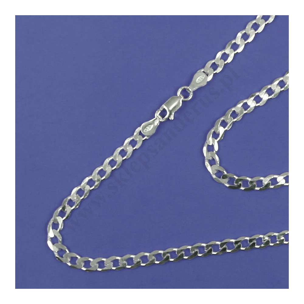 Srebrny łancuszek typu pancerka diamentowana o długości 70 cm, szerokości 4.3 mm i grubości 1.1 mm, waga 16,5 g, próba srebra PR 925.